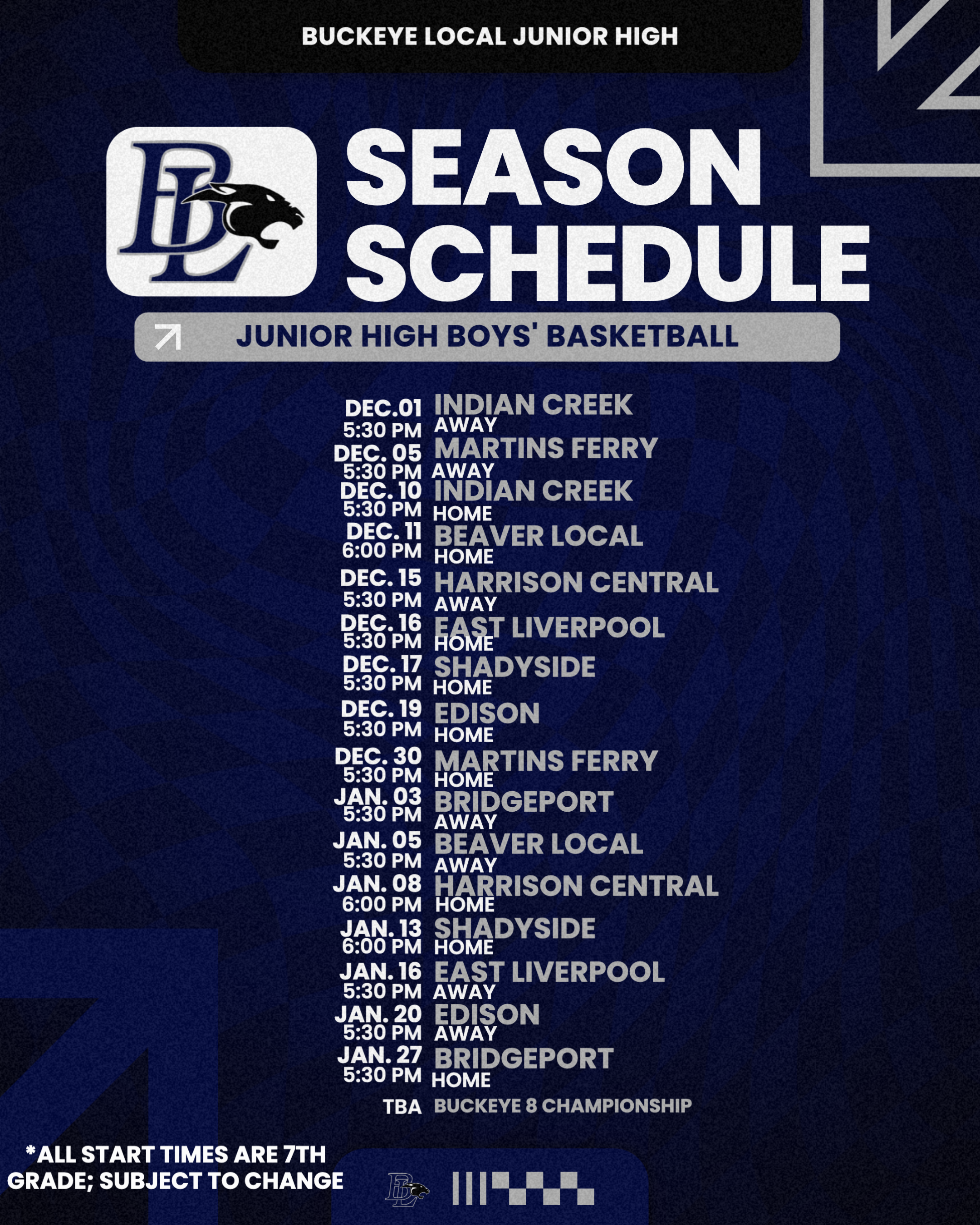 BLJH Boys' Basketball Schedule